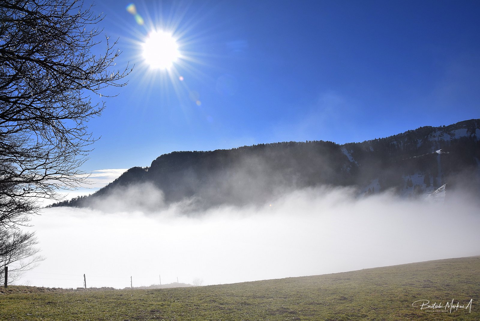 Eine gute Idee, denn vor dem Mittag ist noch kaum jemand unterwegs und das Wetter spielt mit - die Nebelgrenze ist leicht unterhalb des Berggasthauses Balmberg. Auf der Wanneflue bieten sich unzählige schöne Aussichtspunkte und dank dem Umstand, dass fast kein Schnee lag, war der Kretenweg recht gut begehbar.
